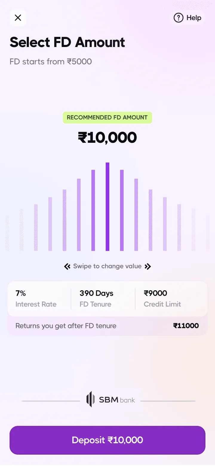 The minimum FD required is ₹2,000. However, it's best to set your FD based on your monthly expenses. Ideally, your FD should be at least three times your monthly expenses. This helps keep credit utilization below 30%, which is recommended for a healthy credit score.