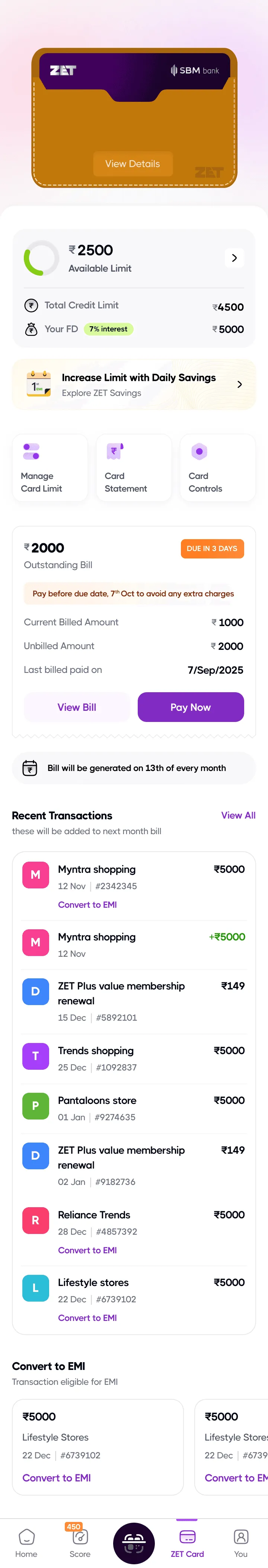 The SBM ZET Credit Card is ideal for: - First-time credit users: If you have no credit history, this card helps you start building your credit score. - Users with a low credit score: If banks have denied you a credit card, you can get easy approval with this secured card. - Existing credit card holders: Adding an FD-backed card improves your credit mix, which helps boost your credit score.